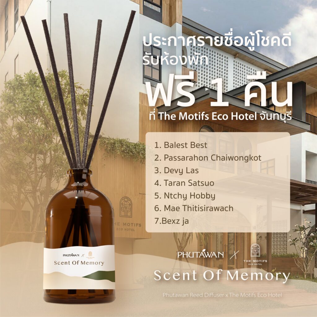 รายชื่อผู้โชคดี ได้รับสิทธิ์ ห้องพักฟรี 1 คืน ที่ The Motifs Eco Hotel จันทบุรี จากแคมเปญ Scent of memory