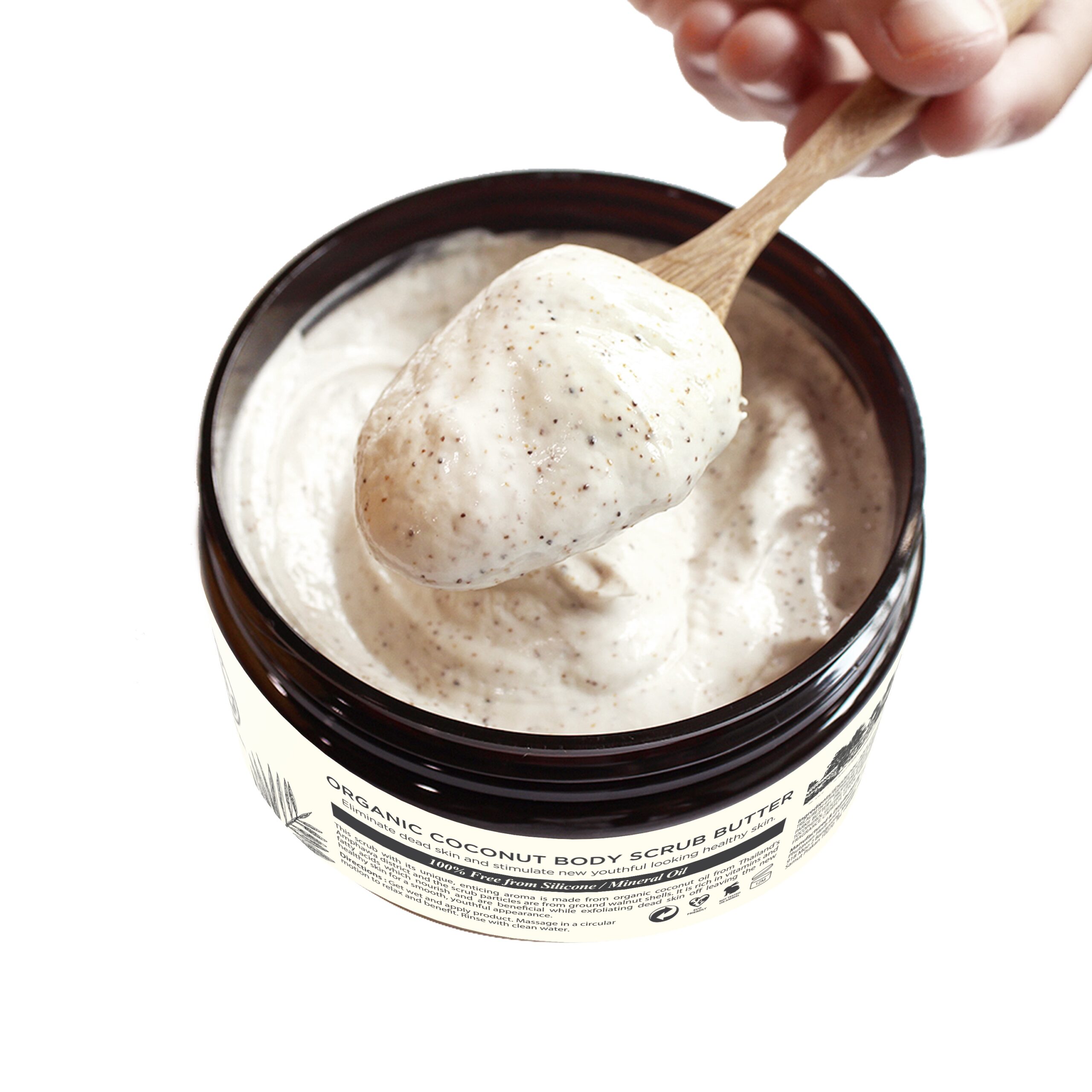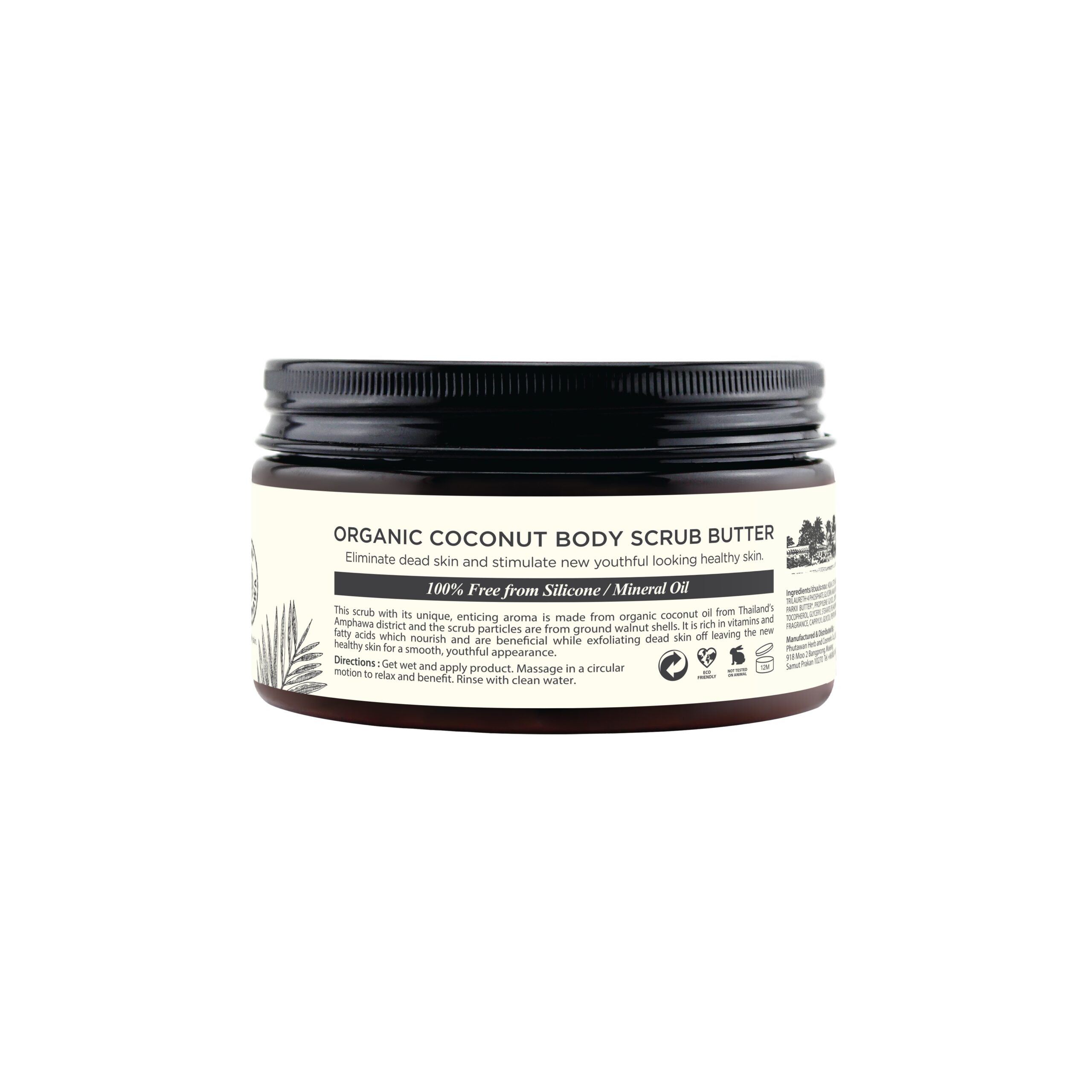 This scrub with its unique, enticing aroma is made from organic coconut oil from Thailand’s Amphawa district and the scrub particles are from ground coconut shells. It is rich in vitamins and fatty acids which nourish and are beneficial while exfoliating dead skin off leaving the new healthy skin for a smooth, youthful appearance.