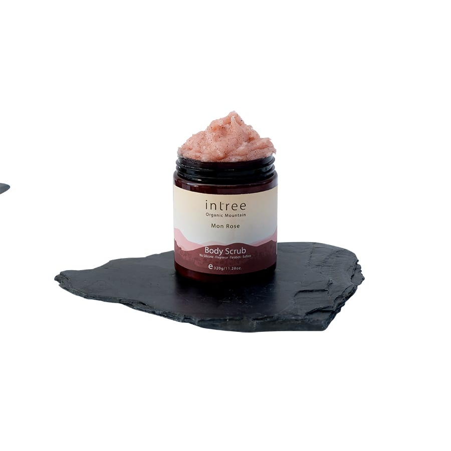 Our Body Scrub combines sea salt crystals with mountain salt for a scrub that leaves skin healthy and youthful looking.The scent of organic rose oil relaxes and restores youthful radiance. Help bring yourskin back to life.