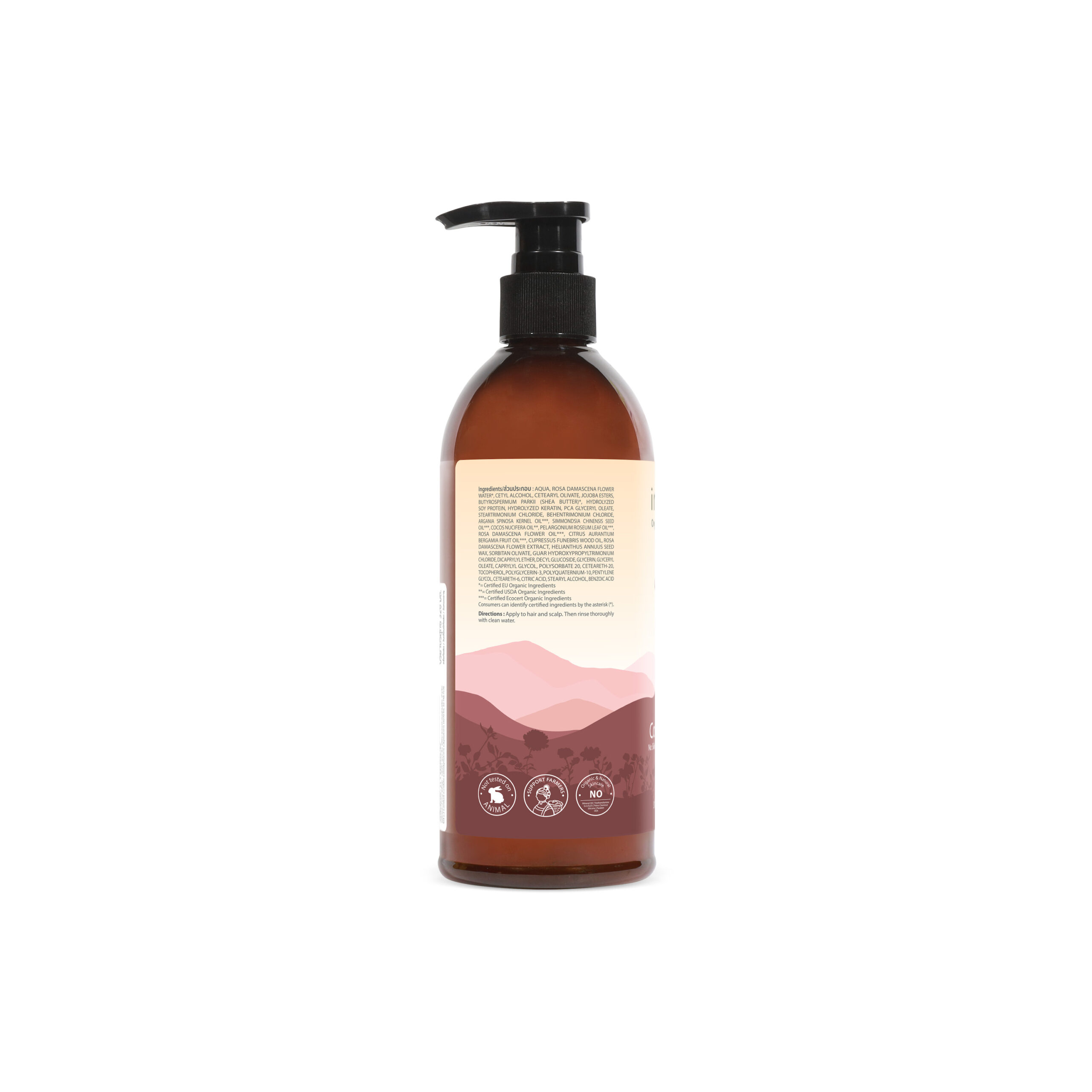 กลิ่นหอมละมุนละไมจากน้ำมันดอกกุหลาบออแกนิค พร้อมคุณค่าสารสกัดดอกกุหลาบมอญช่วยคืนสุขภาพเส้นผมที่อ่อนเยาว์สุขภาพดี ปรับสภาพเส้นผมที่แข็งกระด้างให้อ่อนนุ่มและมีน้ำหนักในทุกครั้งหลังสระผม ฟื้นฟูผมเสียจากแสงแดดและมลภาวะพร้อมคุณค่า Amino Acid ช่วยซ่อมแซมปัญหาผมเสียให้กลับมาแข็งแรงอีกครั้ง