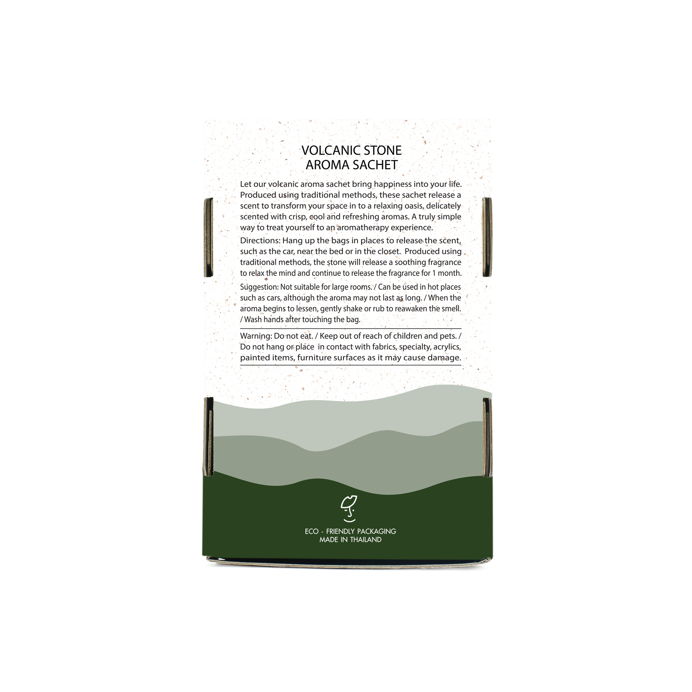 ภูตะวัน โวลคานิค สโตน อโรมา ซาเช่ (ถุงหอมจากหินภูเขาไฟ) นำกลิ่นความสุขเข้าไปอยู่ในชีวิตของคุณได้ง่ายๆ กับความหอม จากถุงหินภูเขาไฟ ที่ผลิตด้วยกรรมวิธีดั้งเดิมด้วยการบ่มกลิ่น ที่ยาวนานเพื่อให้หินสามารถกักเก็บความหอม และปลดปล่อย กลิ่นหอมได้นานสม่ำเสมอตลอดระยะเวลาการใช้ 1-2 เดือน