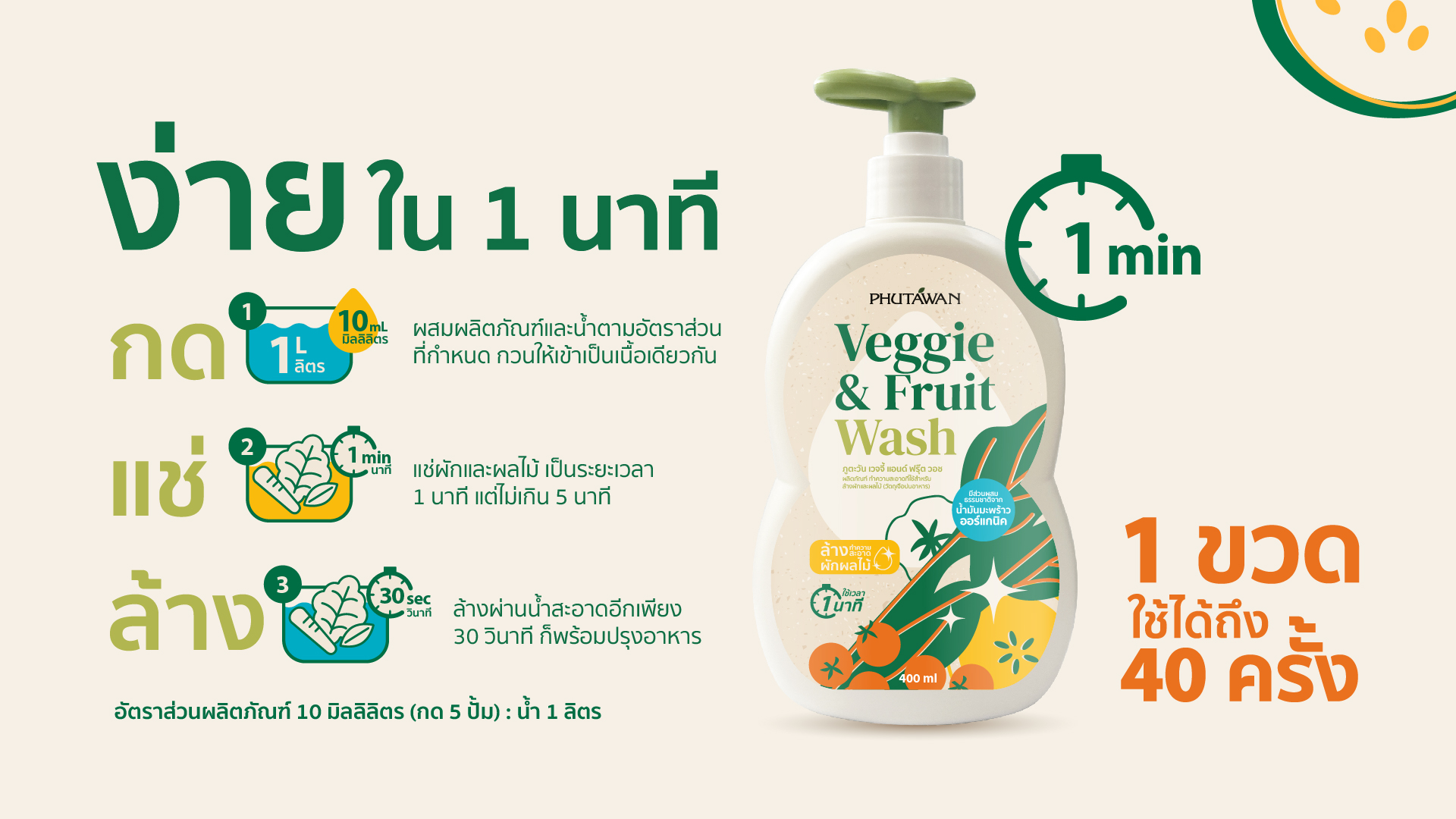 เวจจี้ แอนด์ ฟรุ๊ต วอช ผลิตภัณฑ์ล้างผักและผลไม้ กด แช่ ล้าง ใช้เวลา 1 นาที